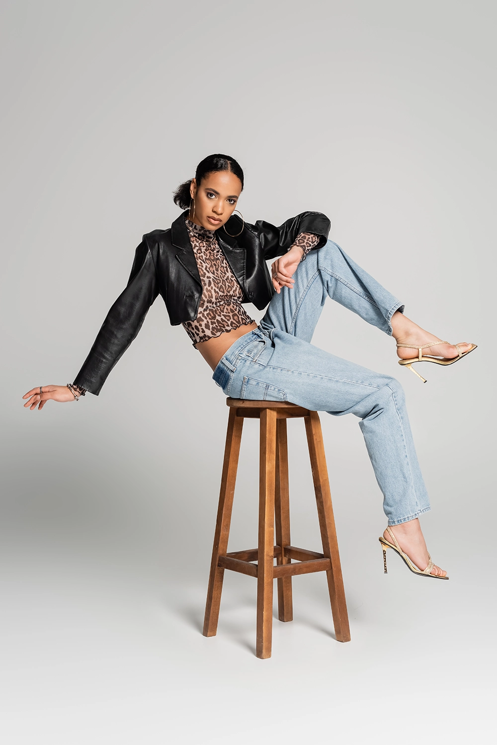 The Wild Print crop top features a fierce leopard pattern and lightweight mesh fabric, offering a bold and trendy look for any outfit.